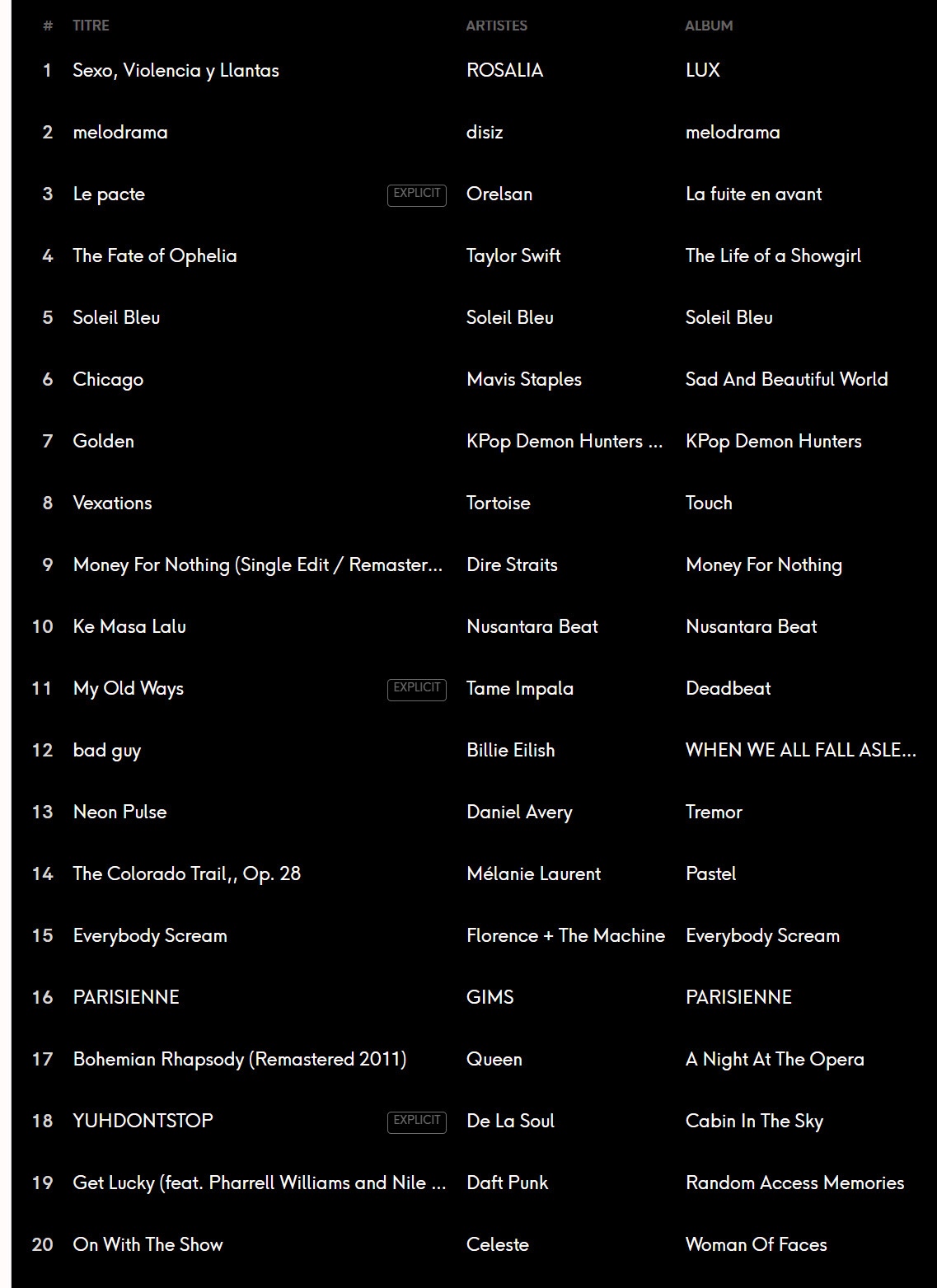 Re: Les artistes les plus écoutés en france en 2025 sur spot