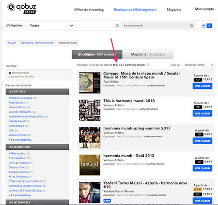 Il y a 1667 liens faciles pour les produits HM chez QOBUZ et 3322 sur le site de la F...