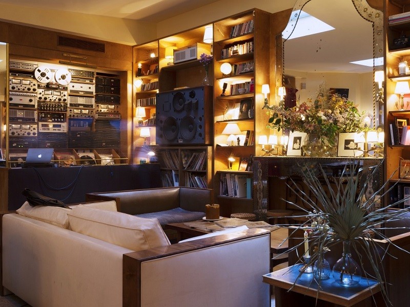 Y a du tube, une platine vinyle et de grosses enceintes dans le salon. Et des panneaux dans une chambre.