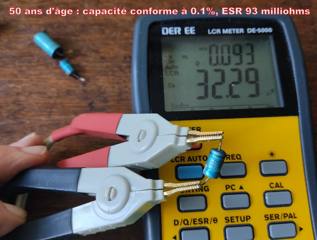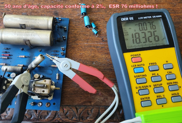 Les chimiques, après presque 60 ans n'avaient pas bougé et la valeur capacitive et l'ESR était encore ok.