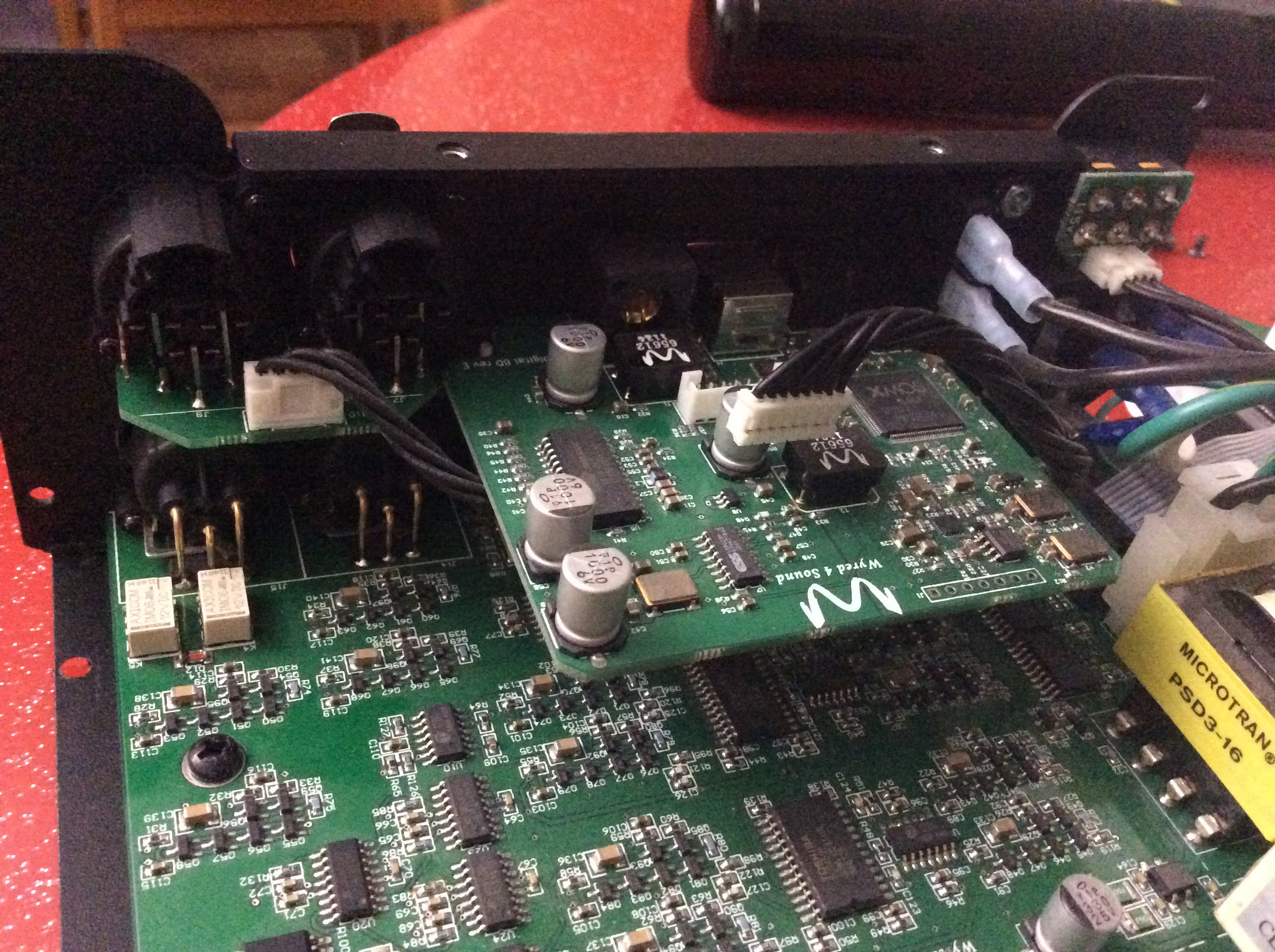 Voilà; j’ai re ouvert l’appareil ; j’ai même démonté la petite carte où est fixe l’entrée. Je pense que l’intervention ne pas être trop compliquée. Il faut dessouder l’entrée et en remettre une neuve.