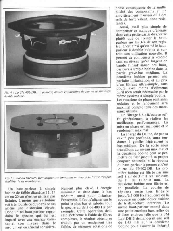 née avec la DB13, le petit 5N402db se retrouve ensuite sur un nombre incalculable d'enceintes françaises et étrangères. soit en version simple ou double bobine "db" en voie grave ou grave médium soit en version médium 5N302, s'ensuit différentes versions au fil des ans ( 5N412), on le retrouve dans une bonne partie de la gamme JM Lab et chez Elipson, Pierre Etienne Léon, Gauglin, Point Source, Mulidine, LEEDH, Chario, Confluence,  Auditor, Adeline, etc...