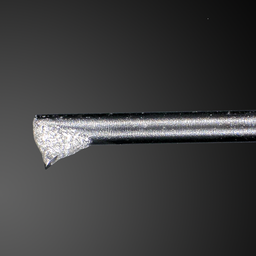 Il existe un troisième système, la tige de bore est perforée, certainement au laser, puis le diamant est enchâssé, soutenu par une minuscule plaquette de titane et l'ensemble est collé. C'est le système adopté sur les modèles haut de gamme de chez AT : les SLC. Pour cela il faut une tige de diamant très petite, plus petite que les sections des Shibata ou des MicroLine-MicroRidge.